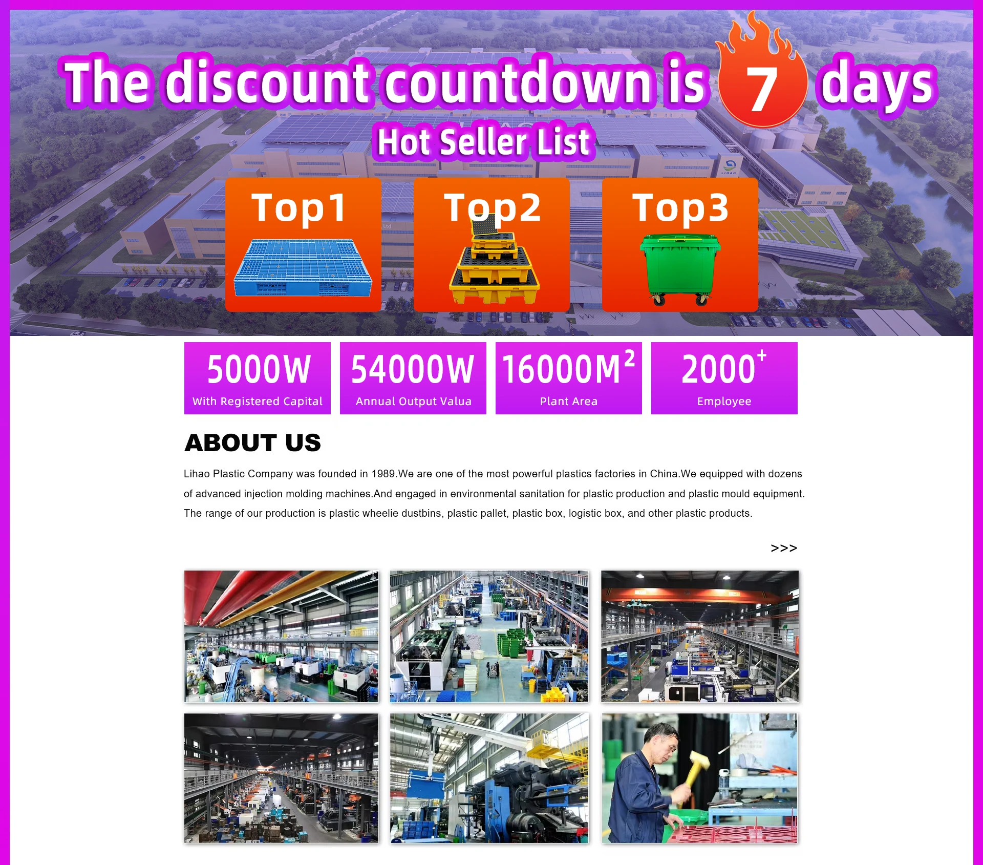 Productos principales:Palé de plástico, cubo de basura de plástico, caja de rotación de plástico;, caja de almacenamiento de plástico, cesta plegable